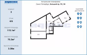 115,1 м²