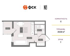 Прямая продажа от застройщика — только в этом месяце. Студия в клубном доме N8 на 7-м этаже. Общая площадь 23,02. Без отделки.