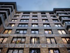 В облике дома отражены характерные черты петербургской исторической архитектуры: фактурная кирпичная кладка песочных оттенков, декоративные вставки и разностилевое остекление.