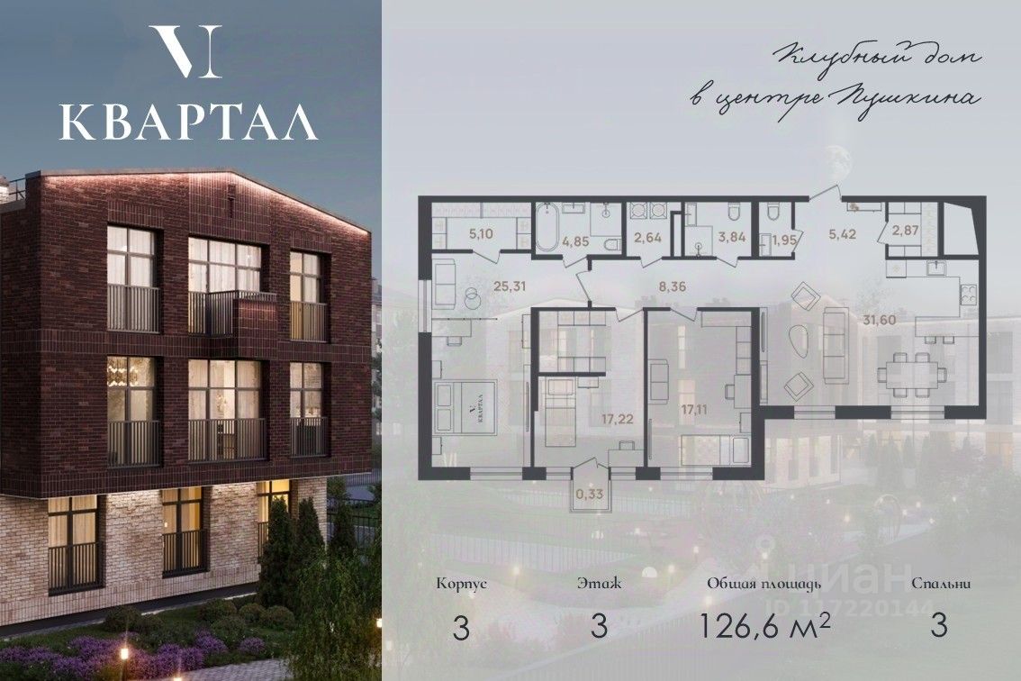 "VI Квартал" клубный проект, состоящий из четырех трехэтажных корпусов, рассчитан на 76 квартир и 98 машиномест в подземном паркинге. "VI Квартал" расположен в городе Пушкин, на ул. Новая, 20, в шаговой доступности от Екатерининского дворца. Комплекс предусматривает квартиры от 54 до 160 м2 с просторными планировками от 1 до 3 спален, с панорамными окнами и высокими потолками от 3 до 3,8 м.