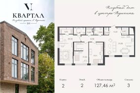 В продаже квартира площадью 127,46 кв.м для семейного проживания. Из холла попадаем в светлую кухню-гостиную с двумя панорамными окнами площадью 32 кв.м, приватная зона отделена от гостевой части квартиры и включает в себя две детские по 17 кв.м с общей ванной комнатой, мастер-спальню с гардеробной и собственной ванной, вспомогательные помещения кладовой и постирочной. Высота потолка 3м, панорамные окна, возможно приобретение машиноместа в подземном паркинге.