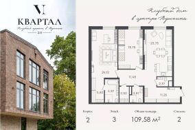 В продаже квартира 108,94 кв.м, расположена на последнем этаже 3 этажного корпуса. Квартиру отличают высокие потолки от 2,9 до 3,8 м, а также совершенно необычные окна высотой 3,7 м. Такая геометрия крыши и окон наполняет квартиру воздухом и светом, а также дает возможность проектирования 2ого уровня для игровой детской зоны или библиотеки. Планировкой предусмотрены кухня-гостиная площадью 23,7 кв.м, просторная детская с выделенной ванной комнатой, мастер-спальня площадью 24,1 кв.м с собственной гардеробной и ванной комнатой. В холле место для системы хранения, гостевой с/у, постирочная. Высота потолка 3м, панорамные окна.
