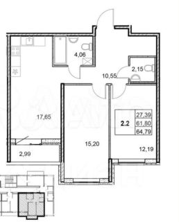 2- изолированные комнаты 15.2 м2 и 12.2 м2