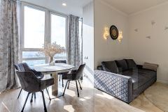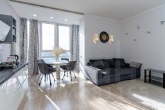 Современный ЖК бизнес класса Репка ( До Ре Ми ) 2016 года постройки с закрытой охраняемой территорией от известного застройщика Прагма. Вокруг ЖК все утопает в зелени. Коломяги известны своей природой. Дом Кирпич-монолит. Квартира находится на 20-м этаже, с которого открывается потрясающий вид на Петербург и его окрестности. В квартире сделан дизайнерский ремонт на полу ламинат, в санузле плитка и теплый пол. В квартире очень хорошая функциональная планировка: большая и просторная кухня-гостиная 24,3 кв.м., комнаты 18,3 кв.м. + 12,5 кв.м., совмещенный санузел. В кухне-гостиной и большой комнате панорамные окна от пола до потолка. Все фото соответствуют реальности. БОЛЬШАЯ ЧАСТЬ МЕБЕЛИ И ТЕХНИКИ ОСТАНЕТСЯ ПОКУПАТЕЛЮ!!!!!!