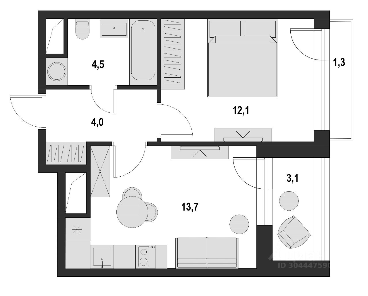 — Кухня-гостиная 13,7 м²