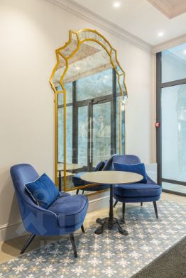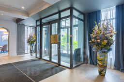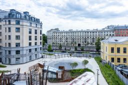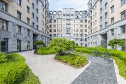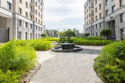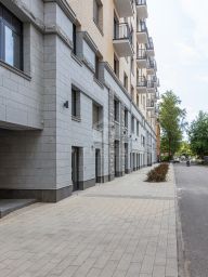 На первых этажах проекта расположены коммерческие помещения. Входная зона - парадное двухсотметровое лобби, во дворе ландшафтный дизайн с фонтаном. Для жителей открыты фитнес-клуб, лобби-бар и переговорная. Предусмотрен круглосуточный консьерж-сервис. Для владельцев автомобилей создан подземный паркинг на 335 мест, включая семейные и с автоподъемниками.