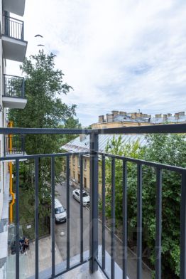 Окна квартиры выходят на реку Карповку и во двор. Всего 3 квартиры на этаже.