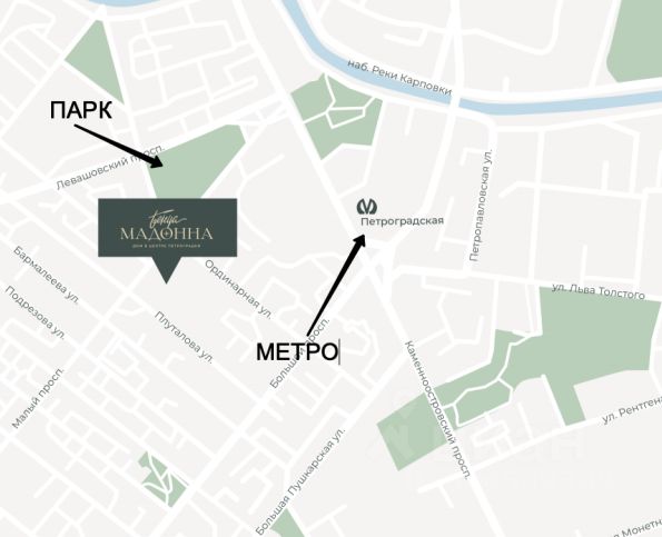 Набережная реки Карповки всего в 350 метрах, а мост Бетанкура и выезд на ЗСД всего в 5-10 минутах на машине.
