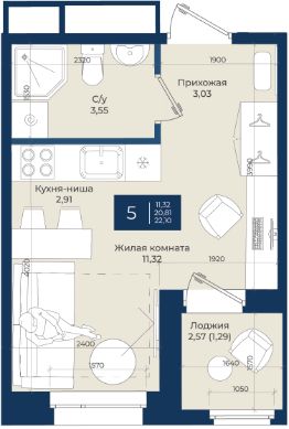 Жилой комплекс "Новатория", 1 очередь строительства, Корпус Б, Квартира 5 общей площадью 22,1 м2 на 2 этаже.ЖК "Новатория" —жилой комплекс комфорт-класса расположен в поселке Новоселье, в окружении леса и Шунгеровского заказника.