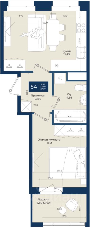 Жилой комплекс "Новатория", 1 очередь строительства, Корпус Б, Квартира 54 общей площадью 37,37 м2 на 12 этаже.ЖК "Новатория" —жилой комплекс комфорт-класса расположен в поселке Новоселье, в окружении леса и Шунгеровского заказника.