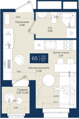 Жилой комплекс "Новатория", 1 очередь строительства, Корпус Б, Квартира 65 общей площадью 22,11 м2 на 2 этаже.ЖК "Новатория" —жилой комплекс комфорт-класса расположен в поселке Новоселье, в окружении леса и Шунгеровского заказника.