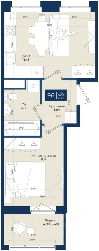 Жилой комплекс "Новатория", 1 очередь строительства, Корпус Б, Квартира 96 общей площадью 37,37 м2 на 8 этаже.ЖК "Новатория" —жилой комплекс комфорт-класса расположен в поселке Новоселье, в окружении леса и Шунгеровского заказника.