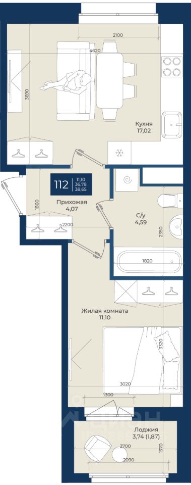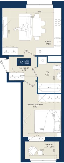 Жилой комплекс "Новатория", 1 очередь строительства, Корпус Б, Квартира 112 общей площадью 38,65 м2 на 12 этаже.ЖК "Новатория" —жилой комплекс комфорт-класса расположен в поселке Новоселье, в окружении леса и Шунгеровского заказника.