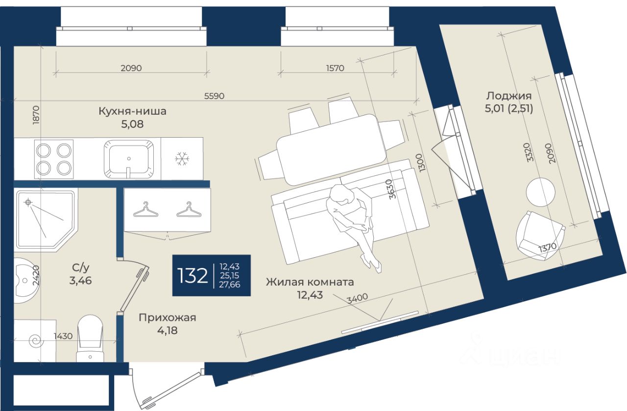 Жилой комплекс "Новатория", 1 очередь строительства, Корпус Б, Квартира 132 общей площадью 27,66 м2 на 5 этаже.ЖК "Новатория" —жилой комплекс комфорт-класса расположен в поселке Новоселье, в окружении леса и Шунгеровского заказника.