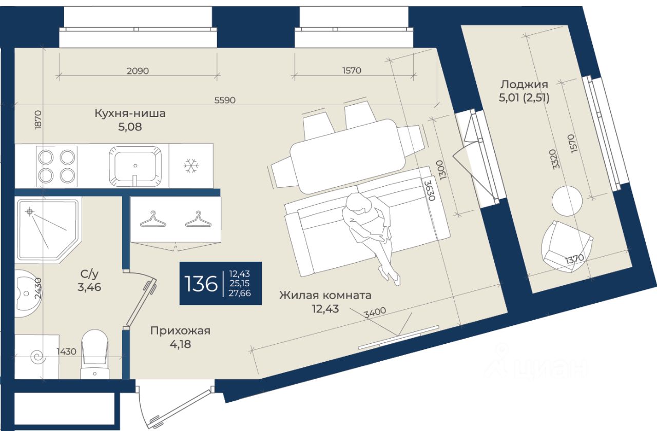 Жилой комплекс "Новатория", 1 очередь строительства, Корпус Б, Квартира 136 общей площадью 27,66 м2 на 6 этаже.ЖК "Новатория" —жилой комплекс комфорт-класса расположен в поселке Новоселье, в окружении леса и Шунгеровского заказника.
