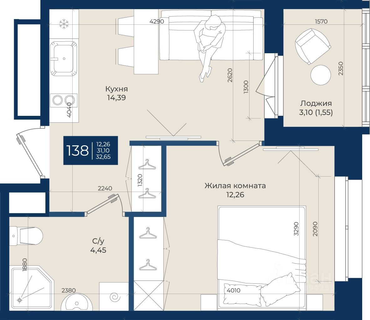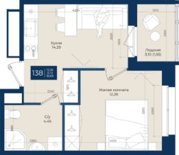 Жилой комплекс "Новатория", 1 очередь строительства, Корпус Б, Квартира 138 общей площадью 32,65 м2 на 6 этаже.ЖК "Новатория" —жилой комплекс комфорт-класса расположен в поселке Новоселье, в окружении леса и Шунгеровского заказника.