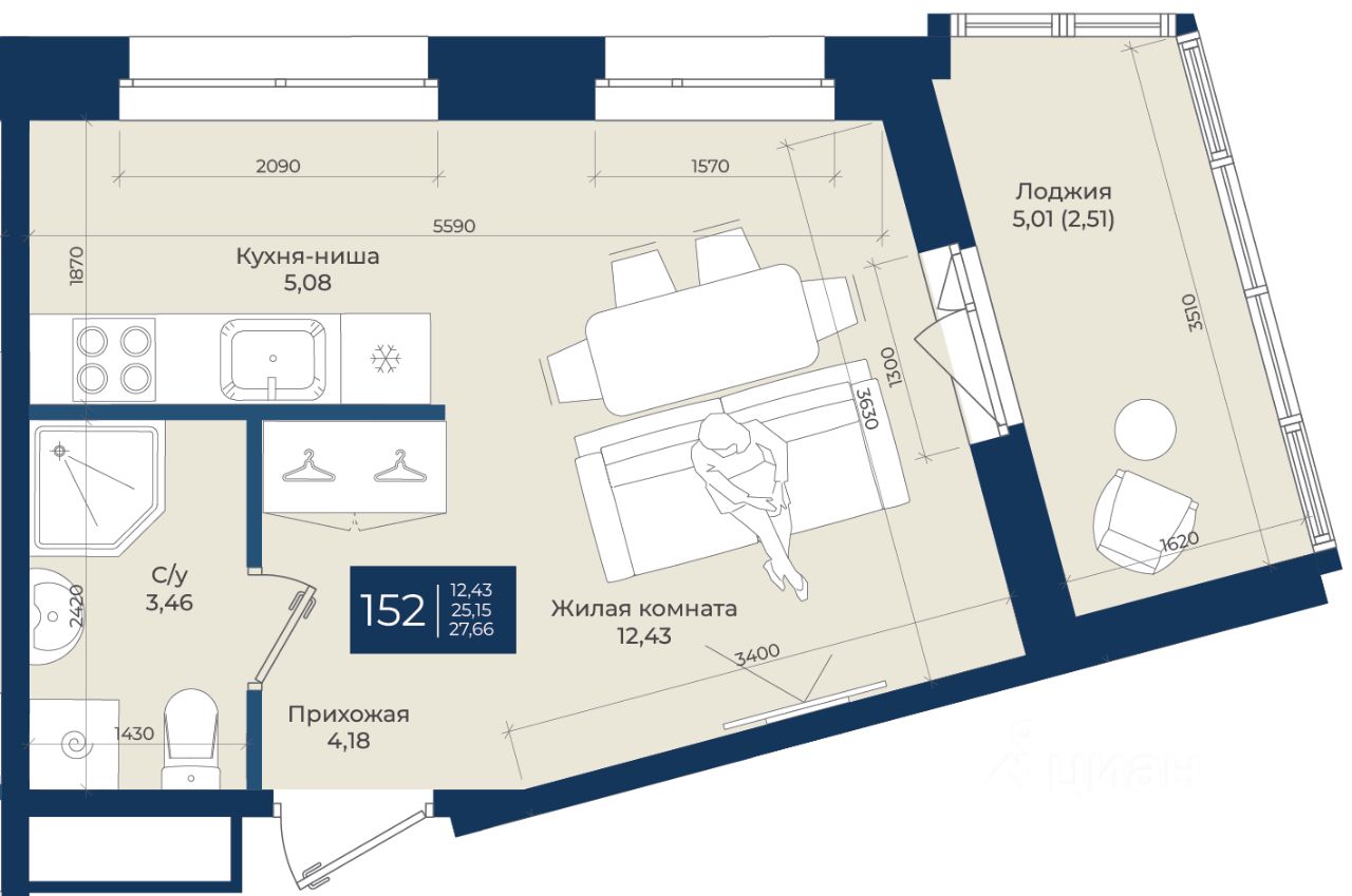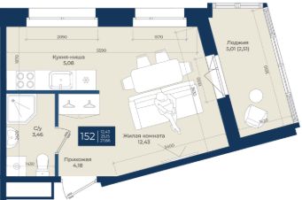 Жилой комплекс "Новатория", 1 очередь строительства, Корпус Б, Квартира 152 общей площадью 27,66 м2 на 10 этаже.ЖК "Новатория" —жилой комплекс комфорт-класса расположен в поселке Новоселье, в окружении леса и Шунгеровского заказника.