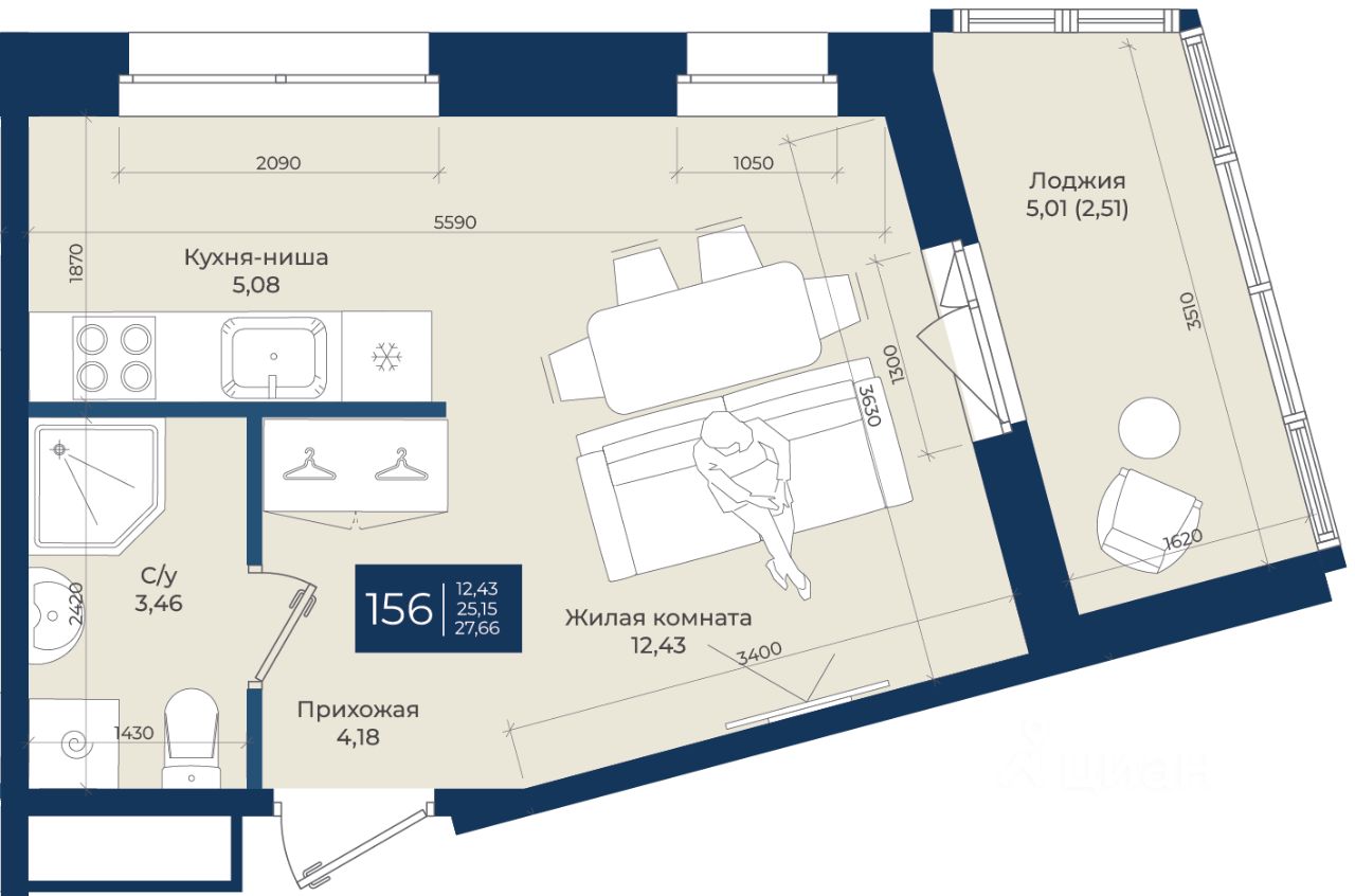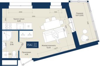 Жилой комплекс "Новатория", 1 очередь строительства, Корпус Б, Квартира 156 общей площадью 27,66 м2 на 11 этаже.ЖК "Новатория" —жилой комплекс комфорт-класса расположен в поселке Новоселье, в окружении леса и Шунгеровского заказника.