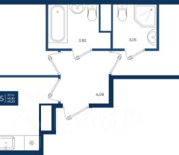 Жилой комплекс "Новатория", 1 очередь строительства, Корпус Б, Квартира 165 общей площадью 48,59 м2 на 2 этаже.ЖК "Новатория" —жилой комплекс комфорт-класса расположен в поселке Новоселье, в окружении леса и Шунгеровского заказника.