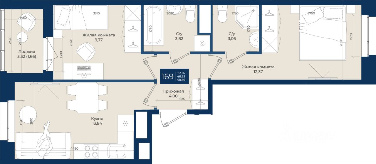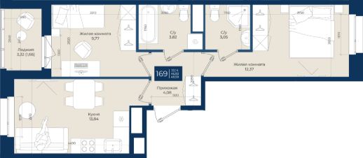 Жилой комплекс "Новатория", 1 очередь строительства, Корпус Б, Квартира 169 общей площадью 48,59 м2 на 3 этаже.ЖК "Новатория" —жилой комплекс комфорт-класса расположен в поселке Новоселье, в окружении леса и Шунгеровского заказника.