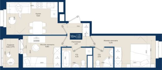 Жилой комплекс "Новатория", 1 очередь строительства, Корпус Б, Квартира 184 общей площадью 48,6 м2 на 6 этаже.ЖК "Новатория" —жилой комплекс комфорт-класса расположен в поселке Новоселье, в окружении леса и Шунгеровского заказника.