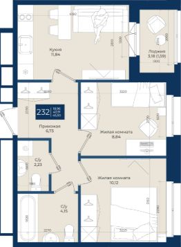 Жилой комплекс "Новатория", 1 очередь строительства, Корпус Б, Квартира 232 общей площадью 45,5 м2 на 9 этаже.ЖК "Новатория" —жилой комплекс комфорт-класса расположен в поселке Новоселье, в окружении леса и Шунгеровского заказника.