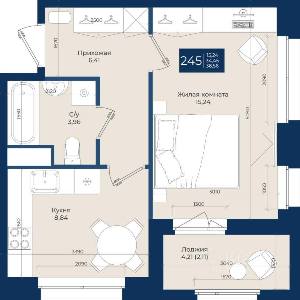 Жилой комплекс "Новатория", 1 очередь строительства, Корпус Б, Квартира 245 общей площадью 36,56 м2 на 2 этаже.ЖК "Новатория" —жилой комплекс комфорт-класса расположен в поселке Новоселье, в окружении леса и Шунгеровского заказника.