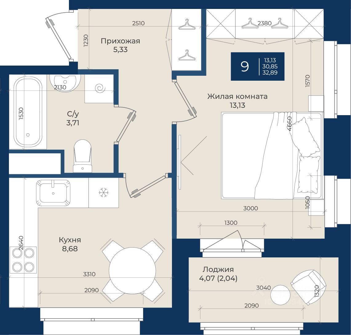 Жилой комплекс "Новатория", 1 очередь строительства, Корпус А, Квартира 9 общей площадью 32,89 м2 на 4 этаже.ЖК "Новатория" —жилой комплекс комфорт-класса расположен в поселке Новоселье, в окружении леса и Шунгеровского заказника.