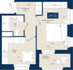 Жилой комплекс "Новатория", 1 очередь строительства, Корпус А, Квартира 29 общей площадью 32,89 м2 на 9 этаже.ЖК "Новатория" —жилой комплекс комфорт-класса расположен в поселке Новоселье, в окружении леса и Шунгеровского заказника.