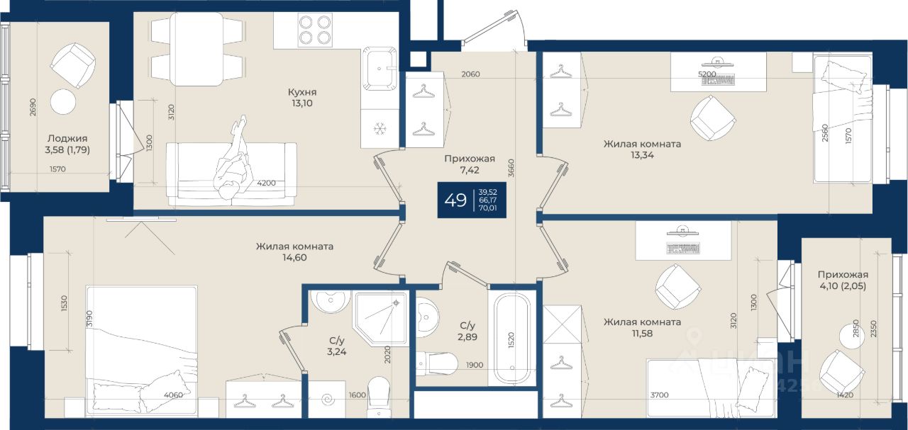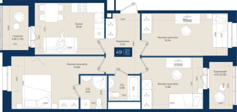 Жилой комплекс "Новатория", 1 очередь строительства, Корпус А, Квартира 49 общей площадью 70,01 м2 на 3 этаже.ЖК "Новатория" —жилой комплекс комфорт-класса расположен в поселке Новоселье, в окружении леса и Шунгеровского заказника.