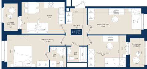 Жилой комплекс "Новатория", 1 очередь строительства, Корпус А, Квартира 61 общей площадью 70,01 м2 на 7 этаже.ЖК "Новатория" —жилой комплекс комфорт-класса расположен в поселке Новоселье, в окружении леса и Шунгеровского заказника.