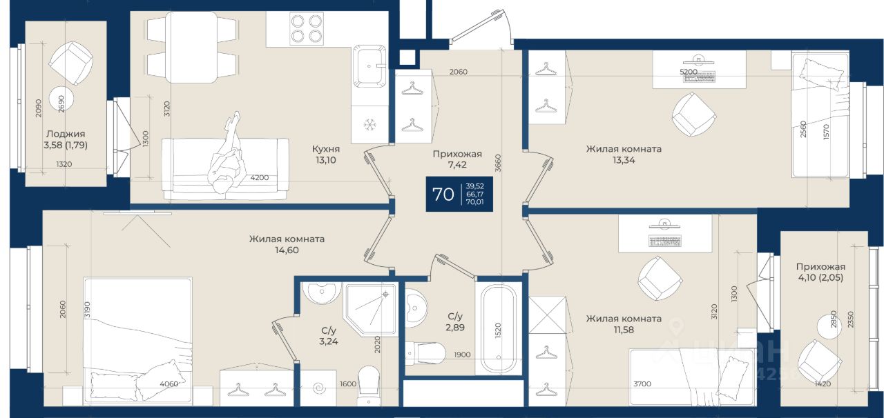 Жилой комплекс "Новатория", 1 очередь строительства, Корпус А, Квартира 70 общей площадью 70,01 м2 на 10 этаже.ЖК "Новатория" —жилой комплекс комфорт-класса расположен в поселке Новоселье, в окружении леса и Шунгеровского заказника.
