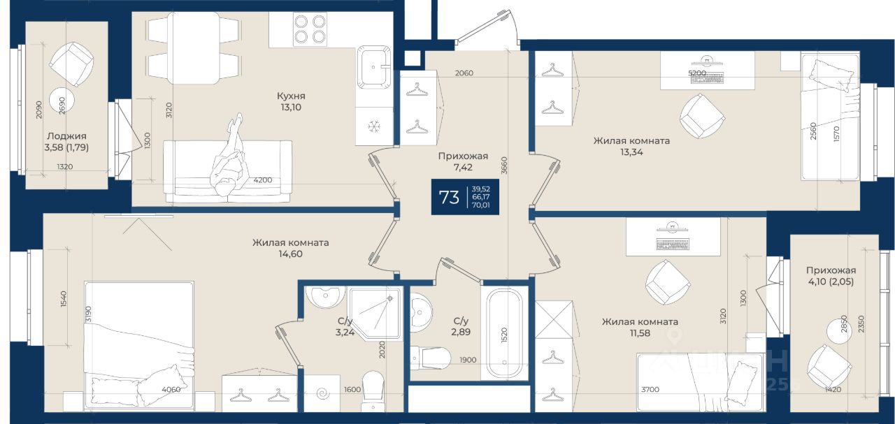 Жилой комплекс "Новатория", 1 очередь строительства, Корпус А, Квартира 73 общей площадью 70,01 м2 на 11 этаже.ЖК "Новатория" —жилой комплекс комфорт-класса расположен в поселке Новоселье, в окружении леса и Шунгеровского заказника.