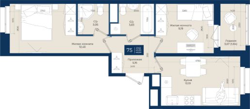 Жилой комплекс "Новатория", 1 очередь строительства, Корпус А, Квартира 75 общей площадью 48,69 м2 на 11 этаже.ЖК "Новатория" —жилой комплекс комфорт-класса расположен в поселке Новоселье, в окружении леса и Шунгеровского заказника.
