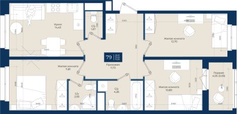Жилой комплекс "Новатория", 1 очередь строительства, Корпус А, Квартира 79 общей площадью 72,35 м2 на 1 этаже.ЖК "Новатория" —жилой комплекс комфорт-класса расположен в поселке Новоселье, в окружении леса и Шунгеровского заказника.