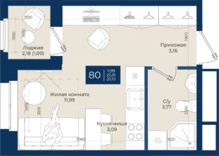 Жилой комплекс "Новатория", 1 очередь строительства, Корпус А, Квартира 80 общей площадью 23,1 м2 на 1 этаже.ЖК "Новатория" —жилой комплекс комфорт-класса расположен в поселке Новоселье, в окружении леса и Шунгеровского заказника.