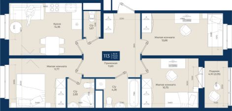 Жилой комплекс "Новатория", 1 очередь строительства, Корпус А, Квартира 113 общей площадью 72,05 м2 на 6 этаже.ЖК "Новатория" —жилой комплекс комфорт-класса расположен в поселке Новоселье, в окружении леса и Шунгеровского заказника.
