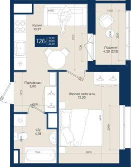 Жилой комплекс "Новатория", 1 очередь строительства, Корпус А, Квартира 126 общей площадью 32,8 м2 на 7 этаже.ЖК "Новатория" —жилой комплекс комфорт-класса расположен в поселке Новоселье, в окружении леса и Шунгеровского заказника.