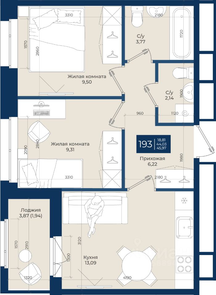 Жилой комплекс "Новатория", 1 очередь строительства, Корпус А, Квартира 193 общей площадью 45,97 м2 на 5 этаже.ЖК "Новатория" —жилой комплекс комфорт-класса расположен в поселке Новоселье, в окружении леса и Шунгеровского заказника.