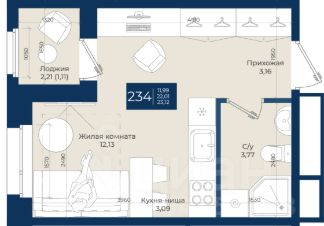 Жилой комплекс "Новатория", 1 очередь строительства, Корпус А, Квартира 234 общей площадью 23,12 м2 на 10 этаже.ЖК "Новатория" —жилой комплекс комфорт-класса расположен в поселке Новоселье, в окружении леса и Шунгеровского заказника.