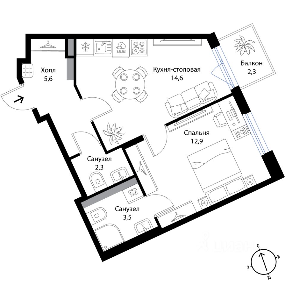 Продаётся 1-комнатная квартира в строящемся доме (Дом 6), срок сдачи: II-кв. 2026, общей площадью 39.6 кв.м., на 3 этаже. Новый жилой комплекс "Экография" от застройщика "ОХТА Групп - Петергоф" расположен по адресу Ленинградская область, Ломоносовский район, Низинское сельское поселение, деревня Ольгино.