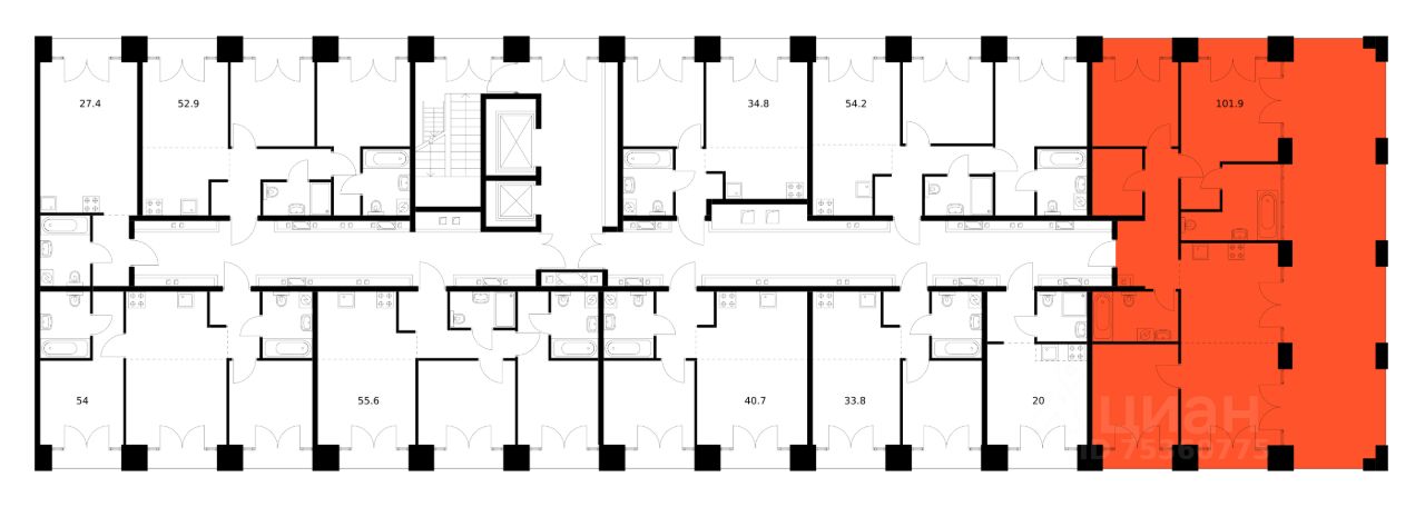 Продаётся 3-комн. квартира площадью 102,8 кв.м на 9 этаже 9 этажного дома (Корпус 2.2, Секция 9) проекта ПИК Лермонтовский 54. Светлый просторный подъезд на уровне земли, функциональная планировка, большие окна, без отделки.
