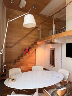 Квартира дерзких возможностей: полежать в джакузи с голубой водой и видом на весь Питер, пригласить друзей в сауну, облицованную целебной солью, пожарить барбекю на террасах, провести бизнес-встречу, не выходя из дома, в гостиной с головокружительными видами, удобной мебелью и био-камином. Много воздуха и света. Квартира двухуровневая и многогранная, пространство и дизайн продумывались профессионалами, в отделке использованы натуральные материалы, дерево. Полностью укомплектована мебелью, бытовой техникой. Оснащена современными системами кондиционирования и рекуперации воздуха, мощными фильтрами воды, стерео системой (музыка, встроенная во все помещения), системой охраны и видеонаблюдения ( и в квартире и при подходе к ней), сочетание технологичности и экологичности во всем. В стоимость входят, мебель, шторы, светильники, техника и оборудование: Кухня - Sachsen Kuchen ( Германия) Бытовая техника - Neff ( Германия) Холодильник, морозильный шкаф - Liebherr Premium ( Германия) Винный шкаф - Liebherr Vinidor ( Германия) Сантехника - Duravit, Dornbracht ( Германия) Унитаз - Toto ( Япония) Мебель в санузле - Keuco ( Германия) Гидромассажная ванна - Pamos ( Германия) Отделка стен и пола паркетной доской - дуб Стиральная машина - Miele (Германия) Сушильный шкаф - Miele (Германия) Паровая - гладильная система - Miele ( Германия) Система очистки воды - Мебранная ультрафильтрационная система WLS ( США) Вентиляция - приточно - вытяжная с обогревом Кондиционеры - Mitsubishi ( Япония) Електрокарнизы Система multi-room Nuvo ( динамики во всех помещениях) ( США) Сауна - эл.печь Tulikivi ( Финляндия), отделка панелями ( Австрия) + соляная стена с подсветкой. У этой квартиры только один минус вы не сможете ее забыть и после нее купить другую. Ждем вас!