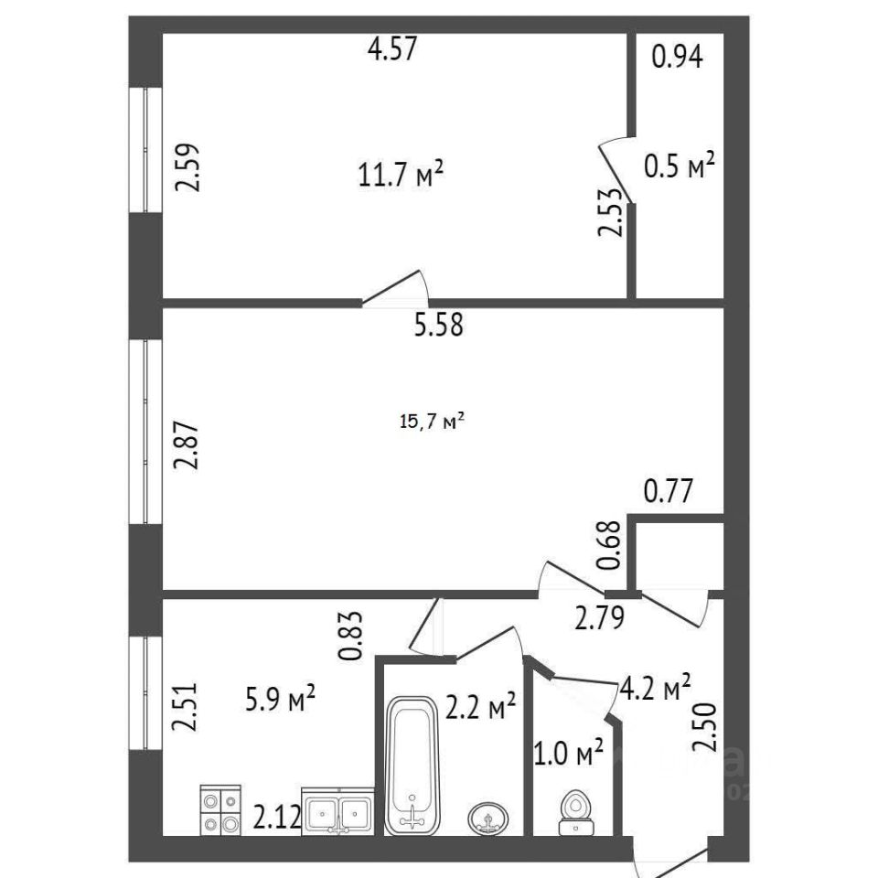 Квартира без ремонта, что позволяет вам воплотить свои дизайнерские идеи и создать интерьер по своему вкусу. Планировка включает две комнаты, раздельныц санузел и компактную кухню. Это отличная возможность для тех, кто хочет сделать жилье "под себя".
