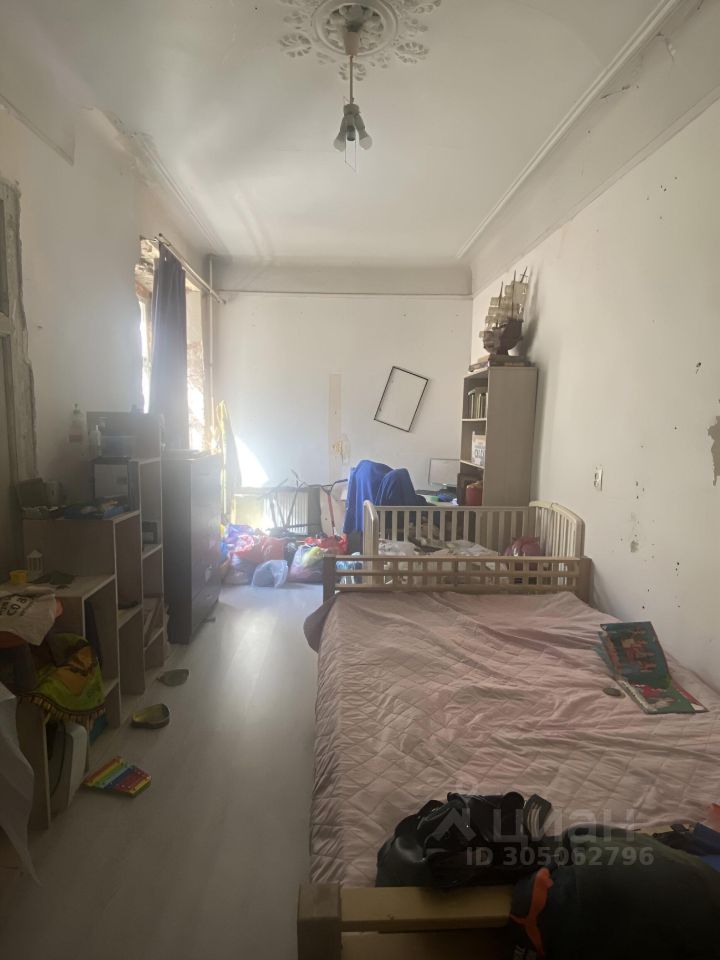 Дом 1913 года — кирпичный, с несущими стенами почти метровой толщины и деревянными перекрытиями по металлическим швеллерам. Квартира занимает весь пятый (последний) этаж — выше только чердак. Потолки 3,2 м, анфиладная планировка сохранена: дверные проёмы между комнатами зашиты гипсокартоном, но при желании их легко вернуть.