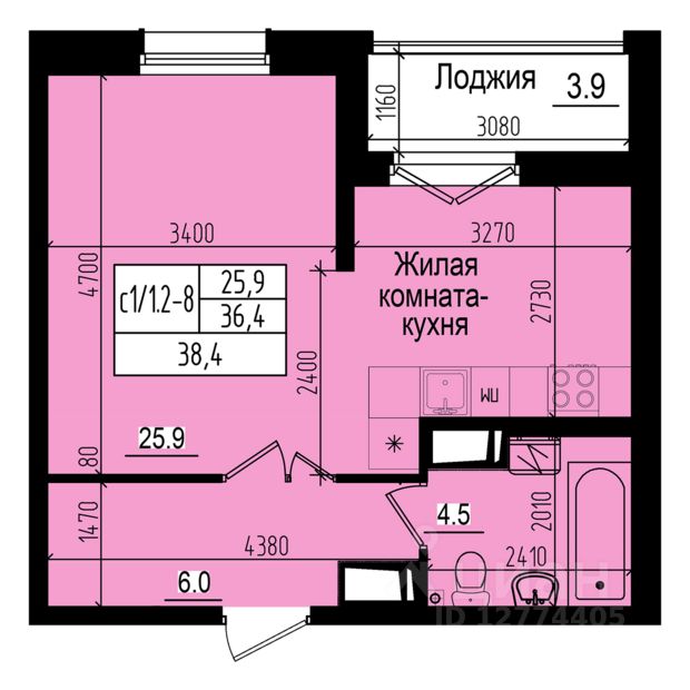 Продается квартира-студия в жилом комплексе "Прагма City", общая площадь - 38.4 кв.м.