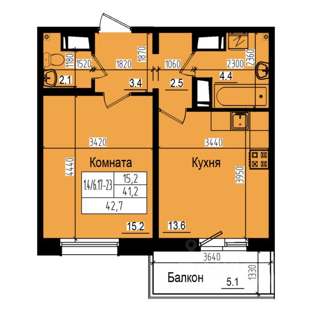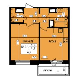 Продается однокомнатная квартира общей площадью 42.7 м2 с высокими потолками - 2.73 м. Жилая комната среднего размера (15.2 м2) позволяет расставить необходимую мебель, не переплачивая за лишние метры. Большое окно с двойными стеклопакетами дает достаточно света, сохраняя при этом тепло. Просторная (13.6 м2), почти квадратная кухня имеет выход на балкон. Прихожая разделена на две зоны, что делает более удобным устройство шкафа или ниши. Санузел раздельный, ванная и туалет разведены по разным сторонам прихожей.