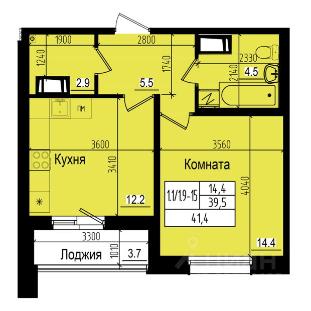 В жилом комплексе "Прагма city" продается однокомнатная квартира общей площадью 41.4 кв.м.