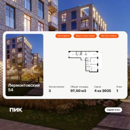 Продаётся 3-комн. квартира площадью 97,5 кв.м на 1 этаже 9 этажного дома (Корпус 2.2, Секция 9) проекта ПИК Лермонтовский 54. Светлый просторный подъезд на уровне земли, функциональная планировка, большие окна, без отделки.