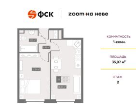 Цена со скидкой до 30% в прямой продаже от застройщика — только в этом месяце. При покупке апартаментов - паркинг за полцены. На все апартаменты действует беспроцентная рассрочка. Купите на распродаже! Покупка недвижимости в Zoom на Неве сейчас со скидкой до 30% позволит через 2 года получить доход до 6 300 000 руб. Роскошные виды на Неву. 1-к апартамент в комплексе класса бизнес-лайт Zoom на Неве на 2-м этаже. Общая площадь 35,97. Без отделки.